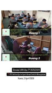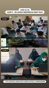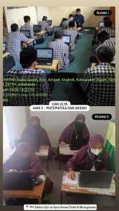 Mulai hari ini sampai satu pekan kedepan santri salafiyah ulya kelas 3 melaksanakan ujian akhir yang berskala nasional secara online. Salafiyah ulya adalah jenjang pendidikan yang setingkat dengan SMA. Namun dalam proses ujian akhir, program salafiyah ini selalu melaksanakan ujian berskala nasional dan untuk tahun wajib dilaksanakan secara online oleh masing masing lembaga. Oleh karena itu ujian akhir salafiyah dinamakan UAN