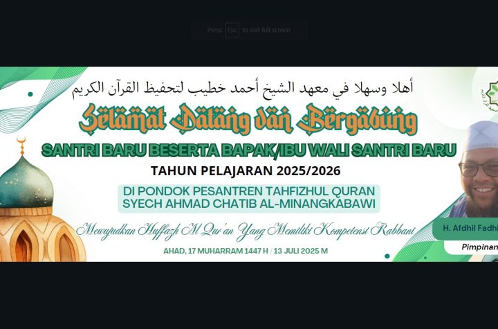 Kamis 31 Juli 2025, Muhammad Alhafizh alumni Pondok Pesantren Tahfizhul Syech Ahmad Chatib Al-Minangkabawi...